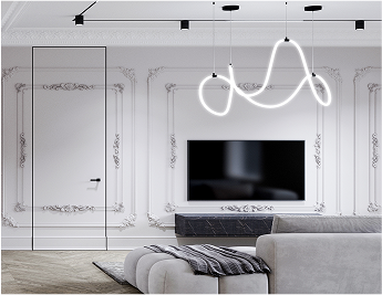 Межкомнатная дверь на скрытом коробе Инвизибл с толщиной полотна 60 мм придаст интерьеру индивидуальные черты благодаря возможности выбора отделки: под покраску, HPL-пластик, ПЭТ однотонное матовое и высоко-глянцевое покрытие.