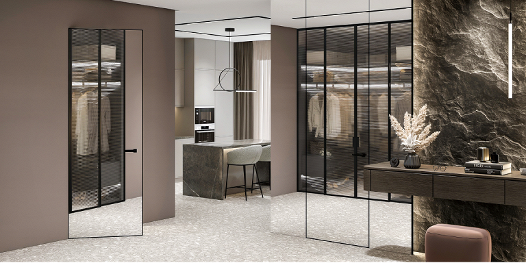 Коллекция «Аргентум» — дверное полотно с большой зеркальной поверхностью. Дверь визуально расширяет пространство, расставляет интерьерные акценты, сохраняя при этом концептуальное и стилевое единство.