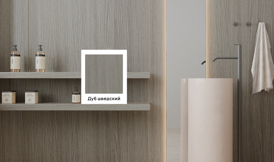 Покрытие демонстрирует богатую текстура дуба, с волнистым узором. Глубокий цвет отделки “Дуб шведский” внесет нотку роскоши в ваш интерьер.